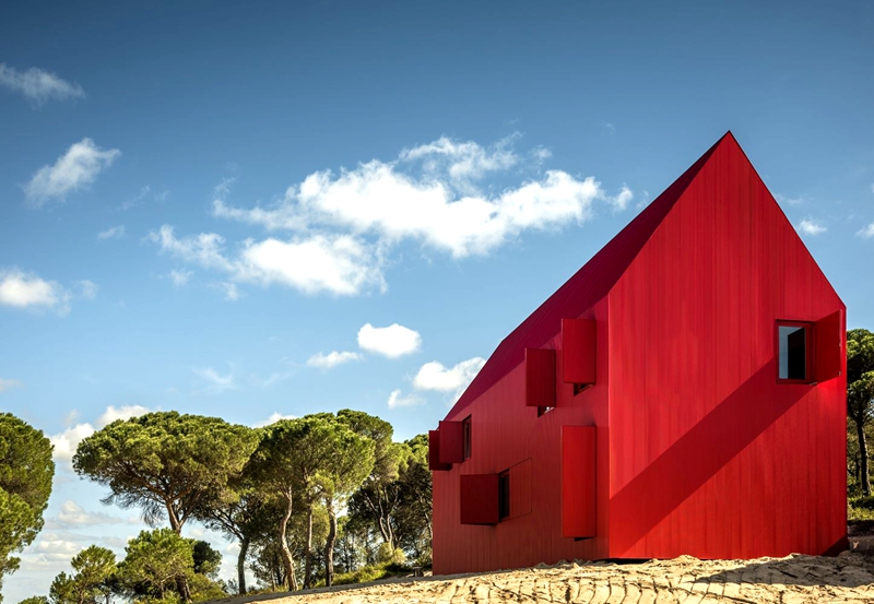 木屋的形狀和顏色設計主要是為了模糊外部和內(nèi)部空間之間界限。木屋的設計旨在提供一個...